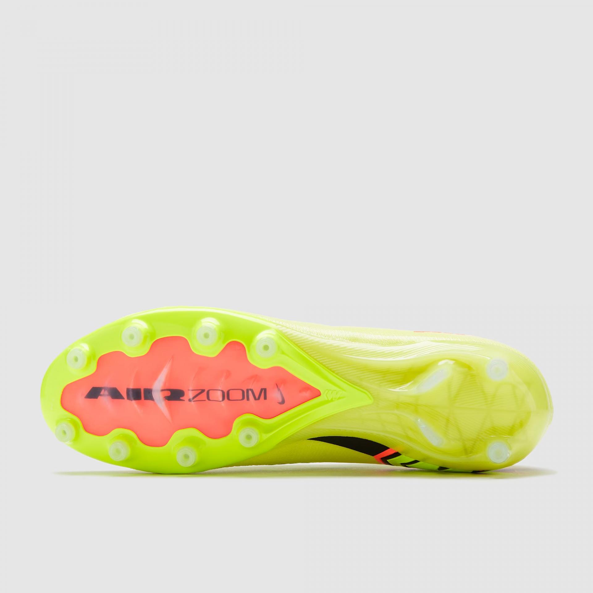 Botas de fútbol Nike Air Zoom Mercurial Vapor 16 Elite AG-Pro para adultos. Botas de hilo, sin tobillera, para usar en campos de hierba artificial. Botas de gama alta para jugadores veloces en color Limelight-Volt-Hyper Crimson.