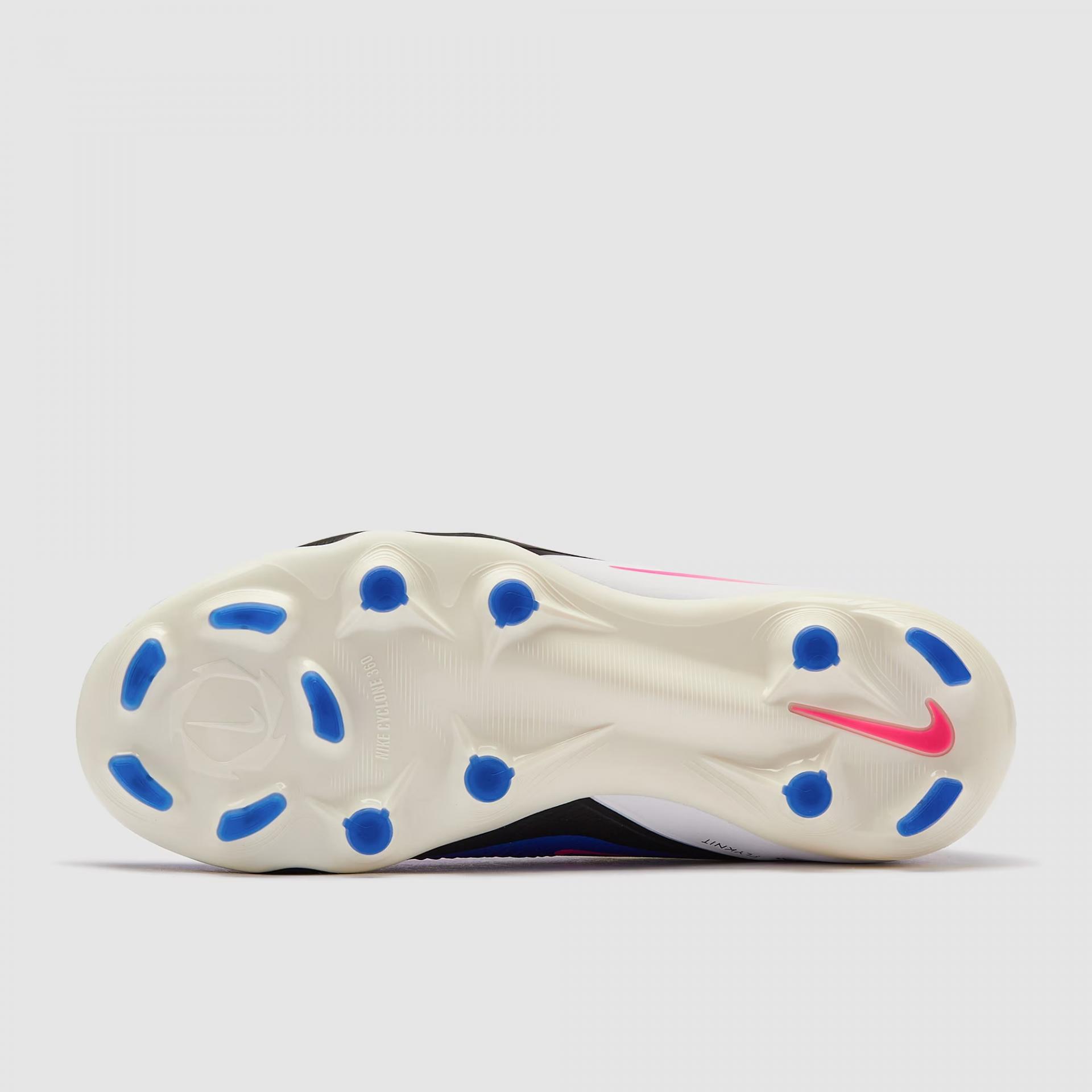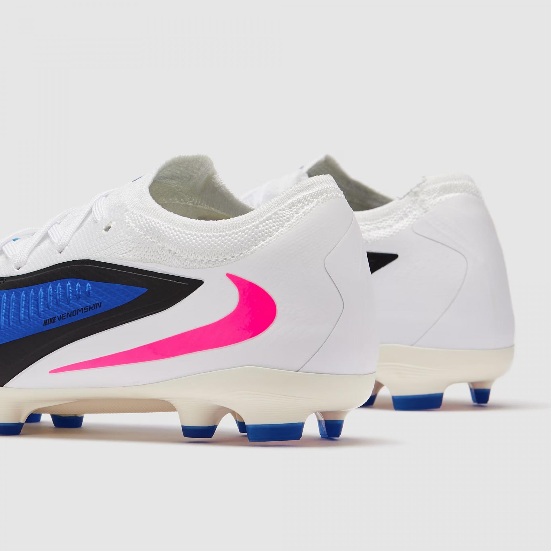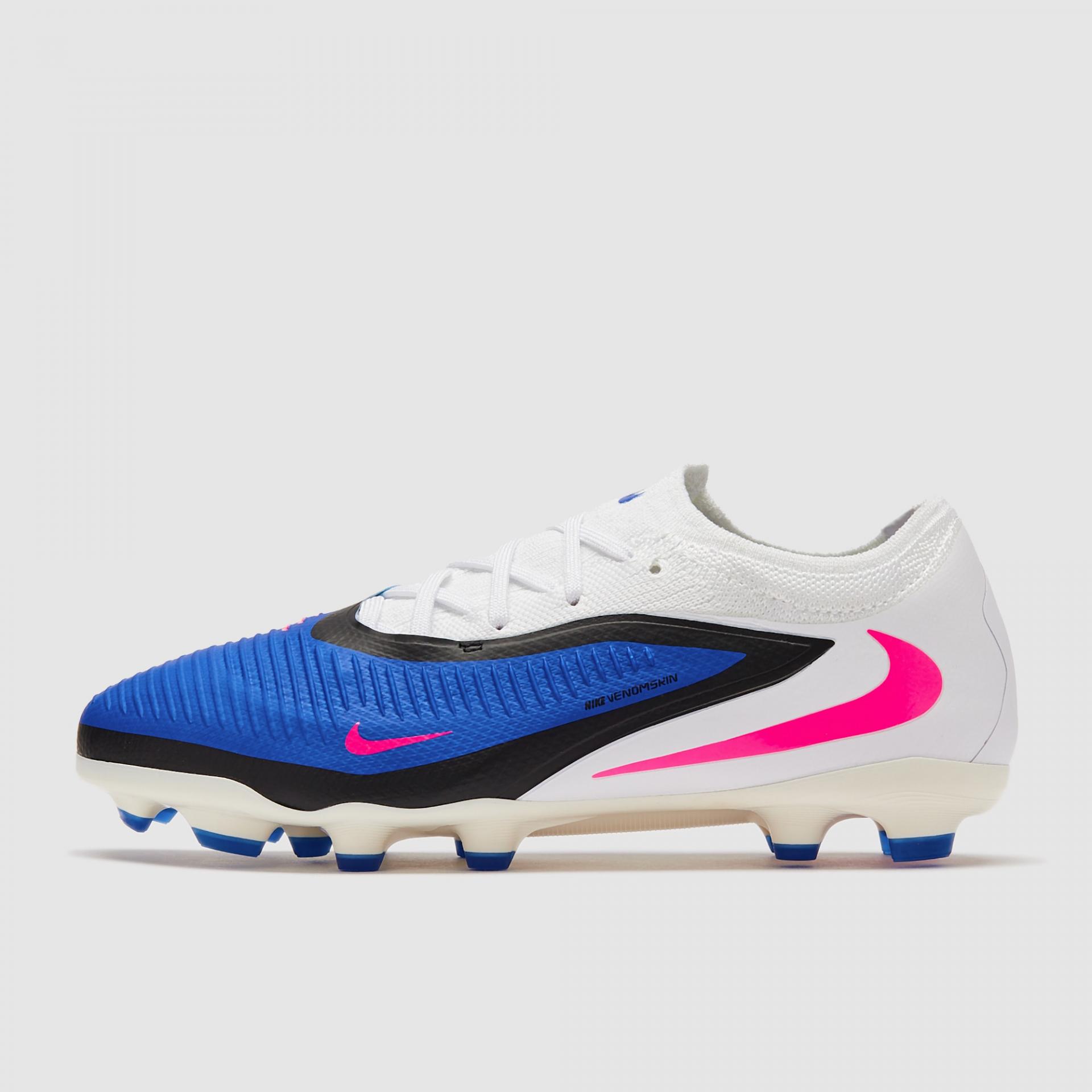 Bota de fútbol Nike Phantom 6 Low Pro FG/MG. Bota de hilo sin calcetín, para utilizar en campos de hierba natural seca o artificial de primera generación. Botas de gama alta para jugadores de control y precisión en color Racer Blue-Pink Blast-White