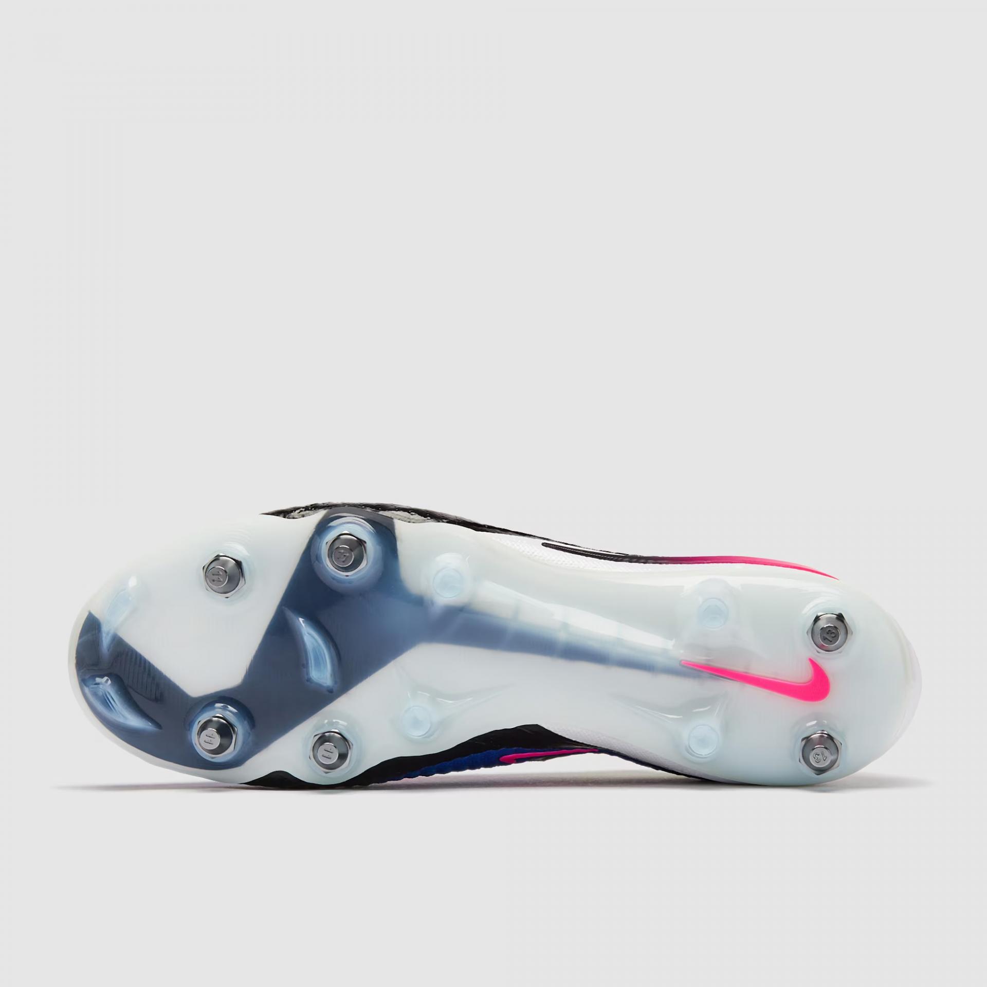 Bota de fútbol Nike Phantom 6 High Elite SG-Pro para adultos. Botas de gama alta con tobillera para jugadores de control y precisión en color Racer Blue-Pink Blast-White para utilizar en campos de hierba natural húmeda.