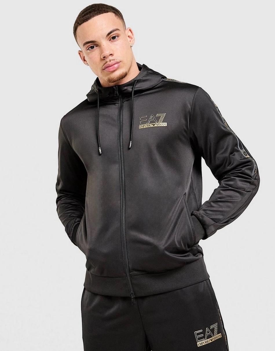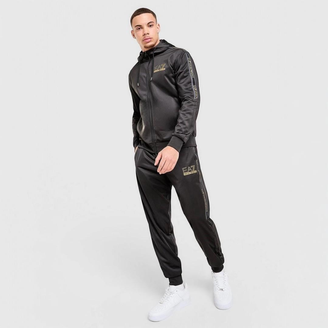 El chándal EA7 Emporio Armani Tape Poly en color negro combina elegancia italiana y diseño deportivo premium en un conjunto completo pensado para destacar. Una opción perfecta para quienes buscan un look sofisticado sin renunciar a la comodidad urbana.