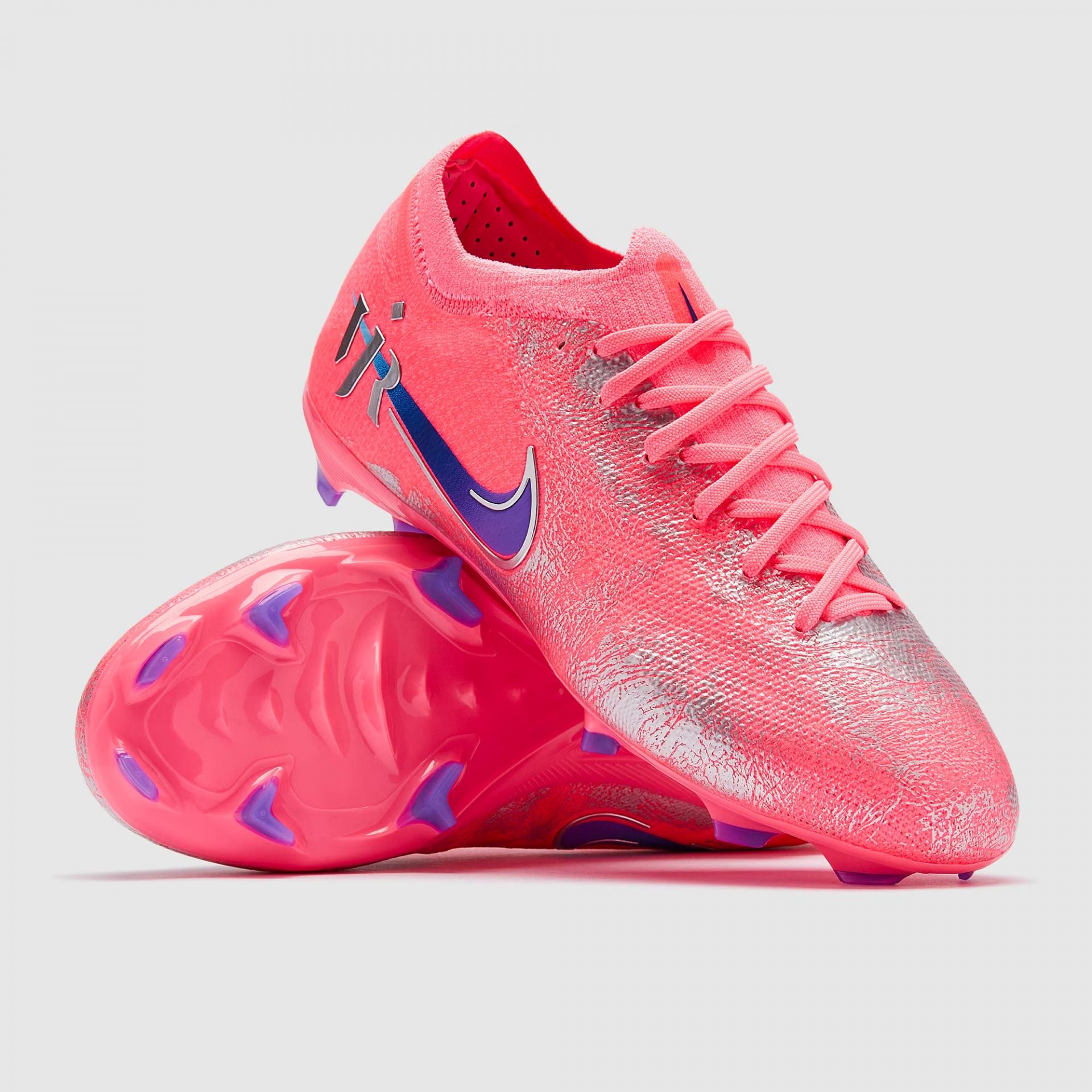 Bota de fútbol Nike Zoom Mercurial Vapor 16 Pro Vini Jr FG para niño. Botas de hilo para utilizar en campos de hierba natural seca. Botas de gama media en color Sunset Pulse-Old Royal.