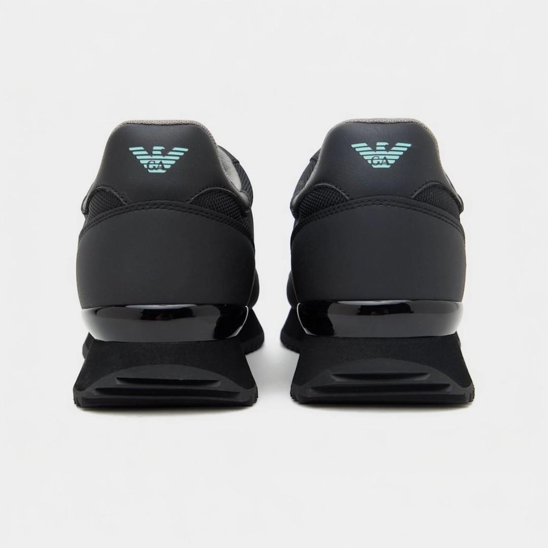 Su parte superior en negro mate aporta un acabado elegante y moderno, mientras que el logotipo EA7 en relieve refuerza la identidad visual sin recargar el diseño. Los detalles en verde agua añaden contraste y un toque distintivo que eleva el conjunto.