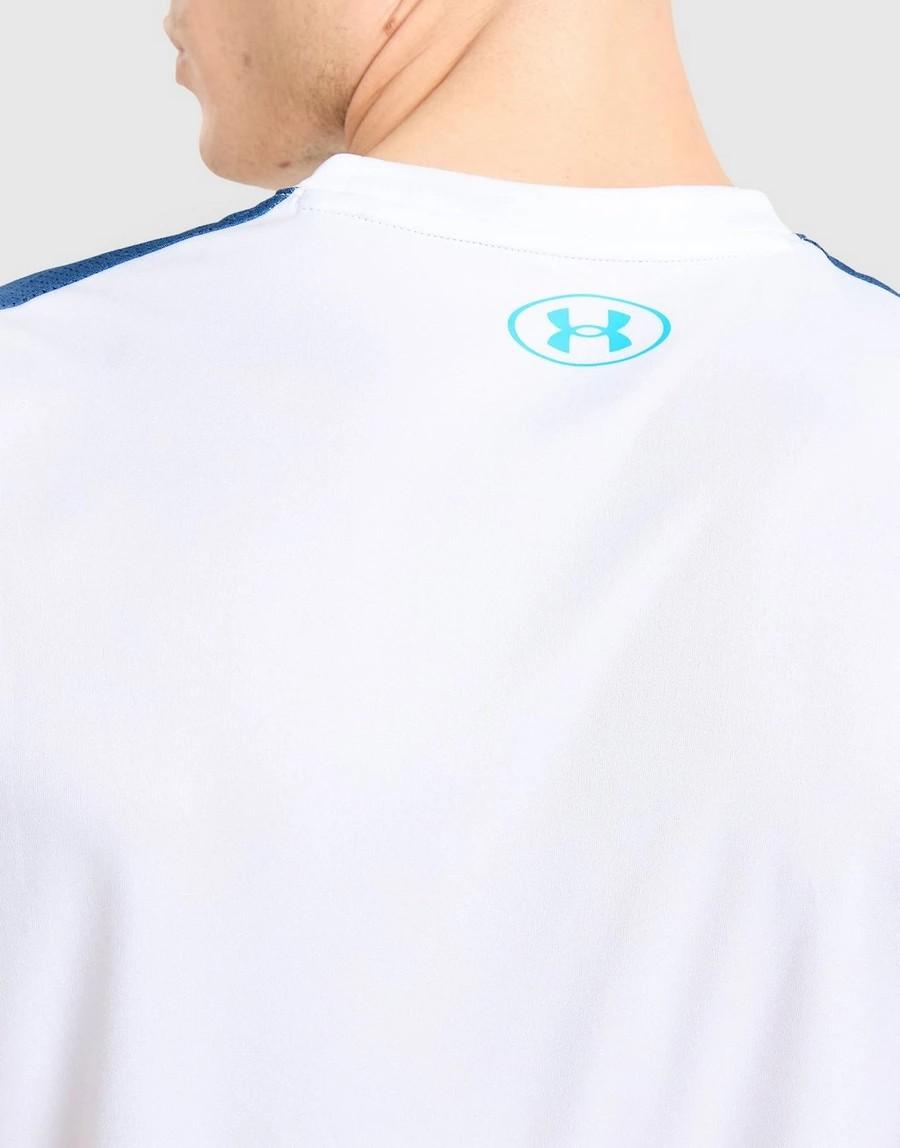 Presenta cuello redondo clásico y mangas cortas, con un corte cómodo que permite libertad de movimiento en cualquier actividad. El diseño se completa con el logotipo de Under Armour en el pecho, aportando identidad deportiva y un acabado limpio.