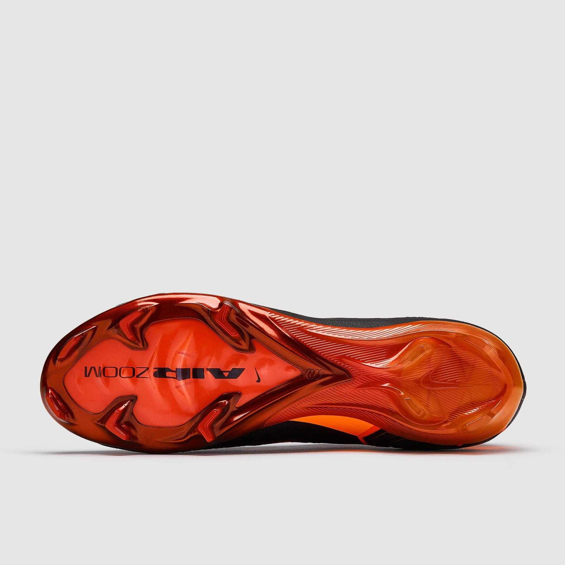 La suela FG incorpora una unidad Air Zoom de 3/4, diseñada para ofrecer una sensación de propulsión, aceleración y reactividad, junto a un patrón de tacos que mejora la tracción en césped natural seco.