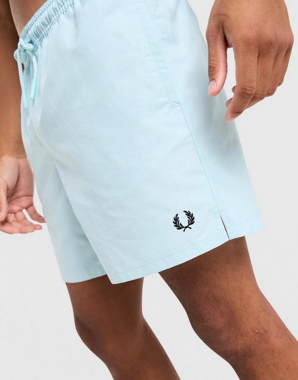 El bañador Fred Perry Side Laurel Wreath Azul Claro está diseñado para quienes buscan comodidad, estilo y un look limpio para verano. Este modelo en color azul claro con gran logo laurel en negro en el lateral presenta un diseño llamativo que destaca tanto en piscina como en playa.