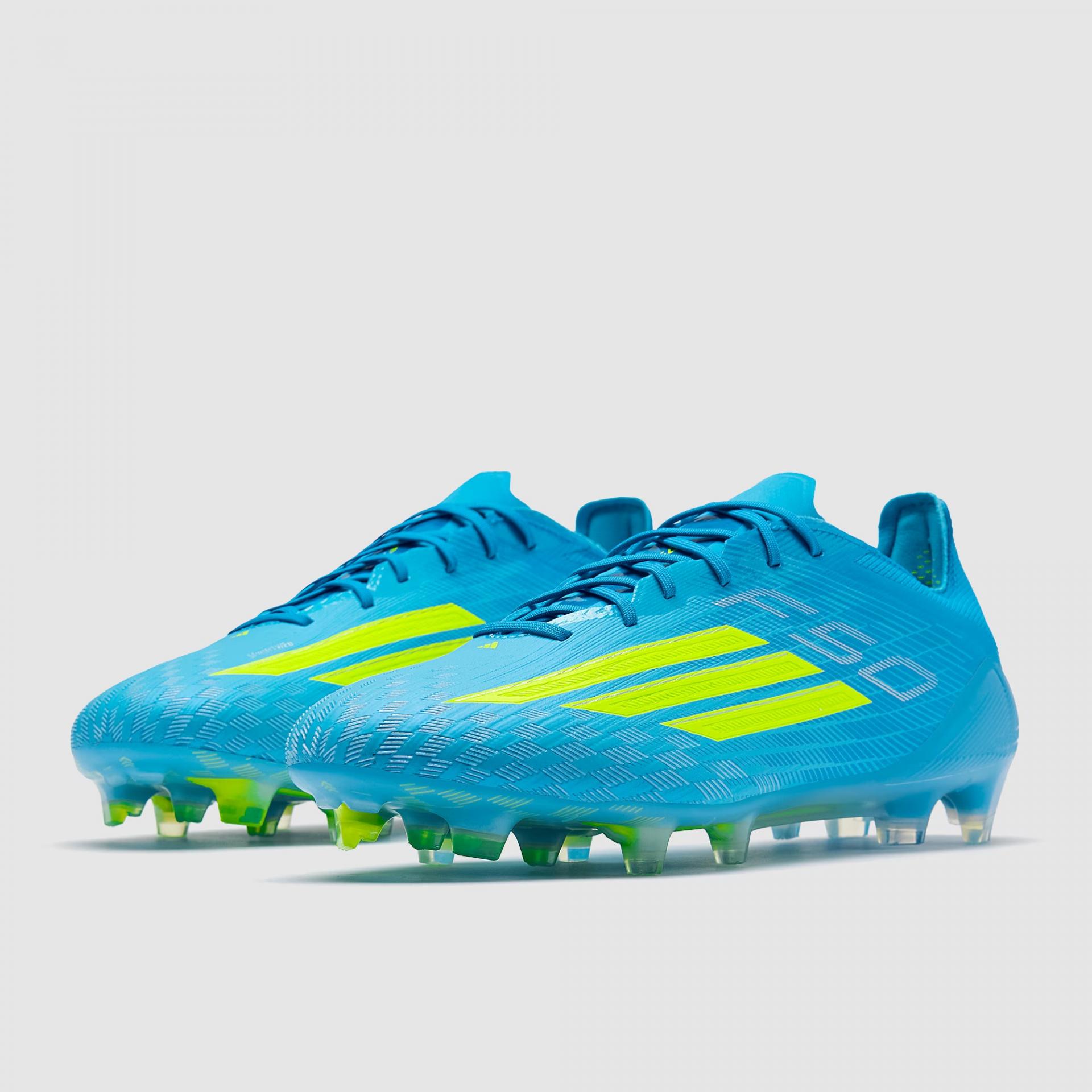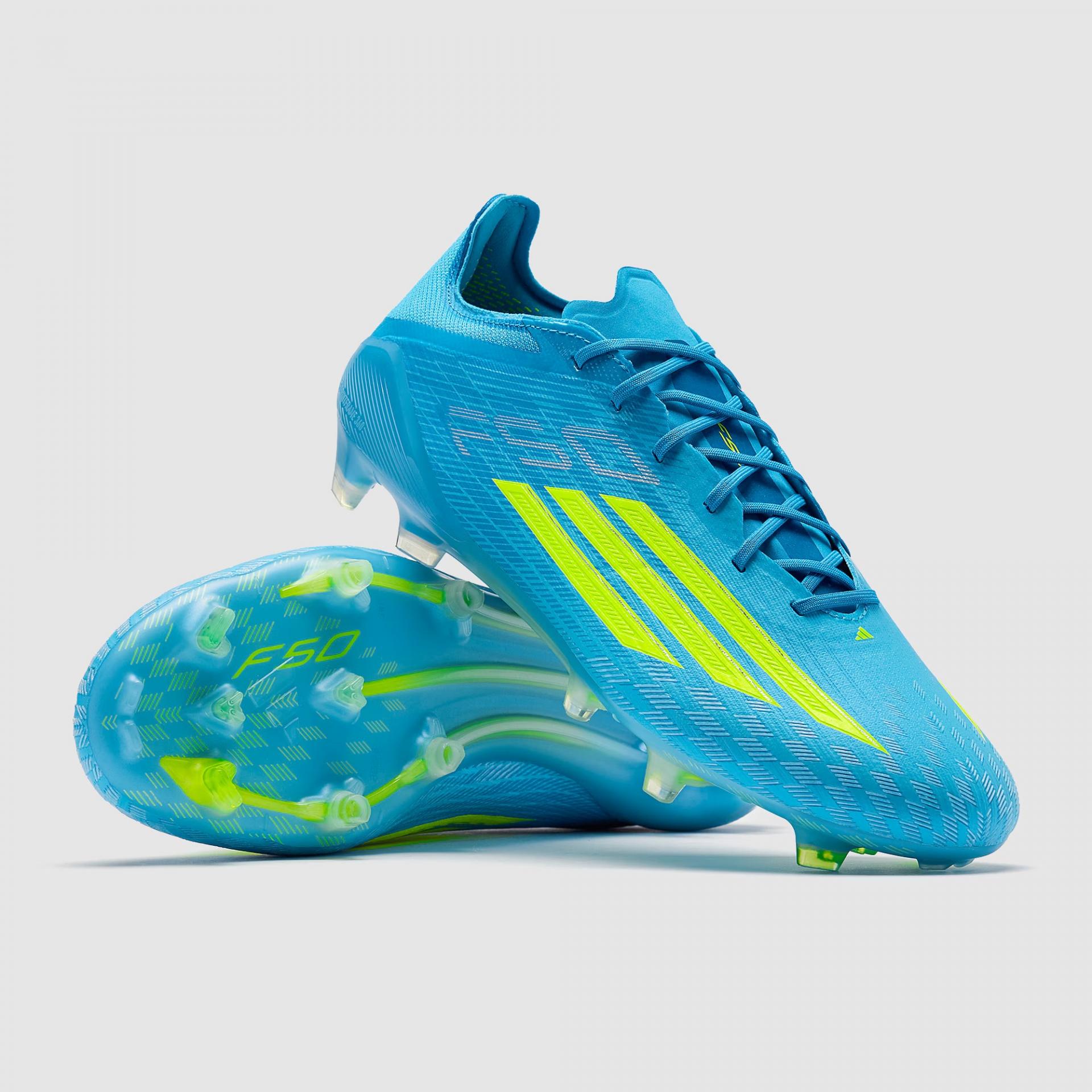 La bota adidas F50 Elite FG azul amarillo está diseñada para jugadores que buscan máxima velocidad, ligereza y explosividad en el campo. Este modelo en color azul con detalles en amarillo y turquesa pertenece al Ice Cold Precision Pack, destacando por su diseño llamativo y moderno orientado al juego rápido.