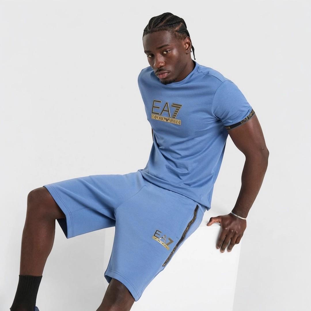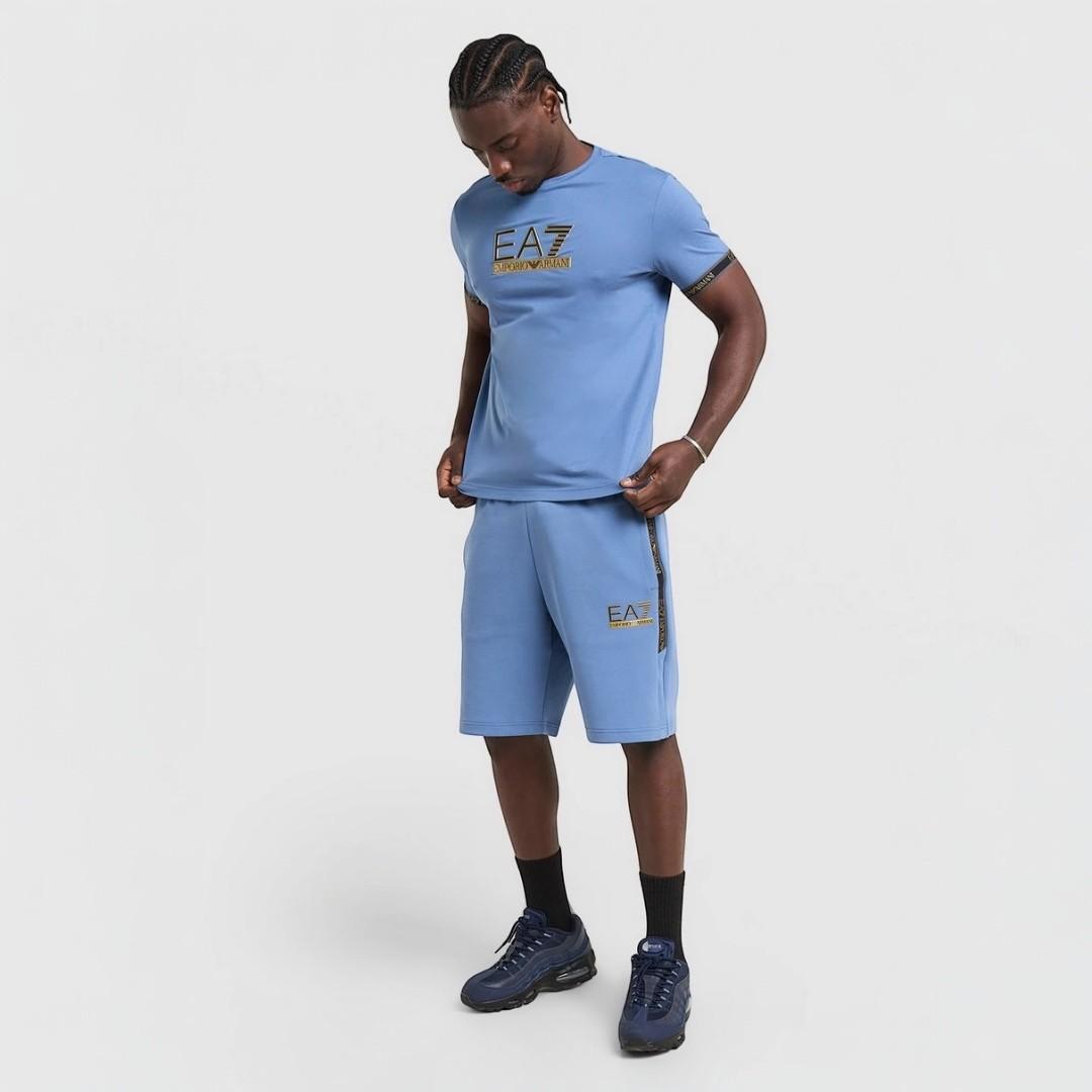 El pantalón corto EA7 Emporio Armani Tape azul es un short premium con estilo deportivo y presencia de marca, perfecto para verano, gimnasio o uso diario.
